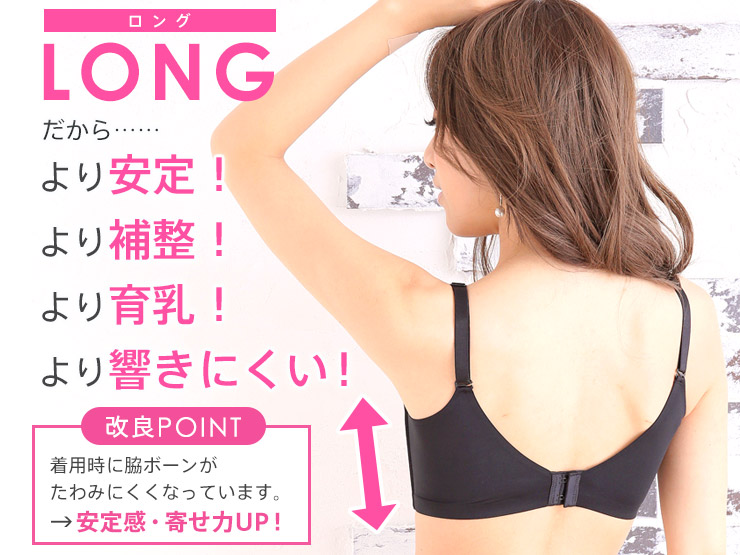 脇高ボーン&脇高設計で、流れてしまった脇肉やハミ肉を背中からグイっと寄せて、ぜい肉も逃さずに谷間を作る仕様です。