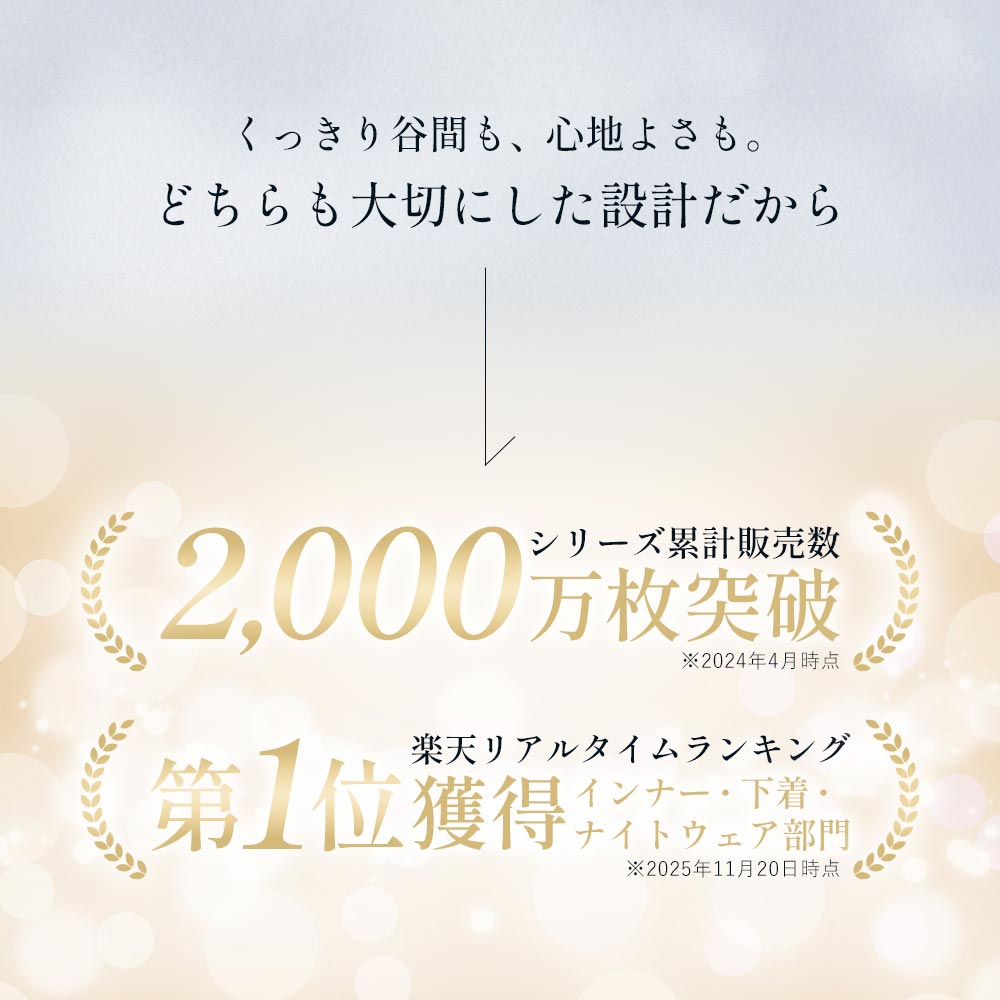 ・通常の「ノンワイヤー超盛ブラ(R)」よりカップが広がりにくく、谷間キープ力UP