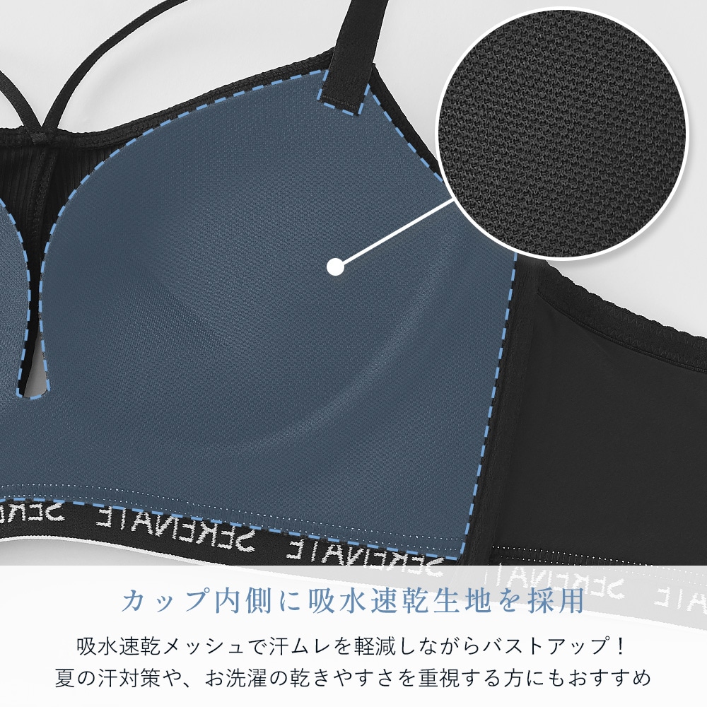 ・カップ内側は吸水速乾生地で、汗ムレを軽減