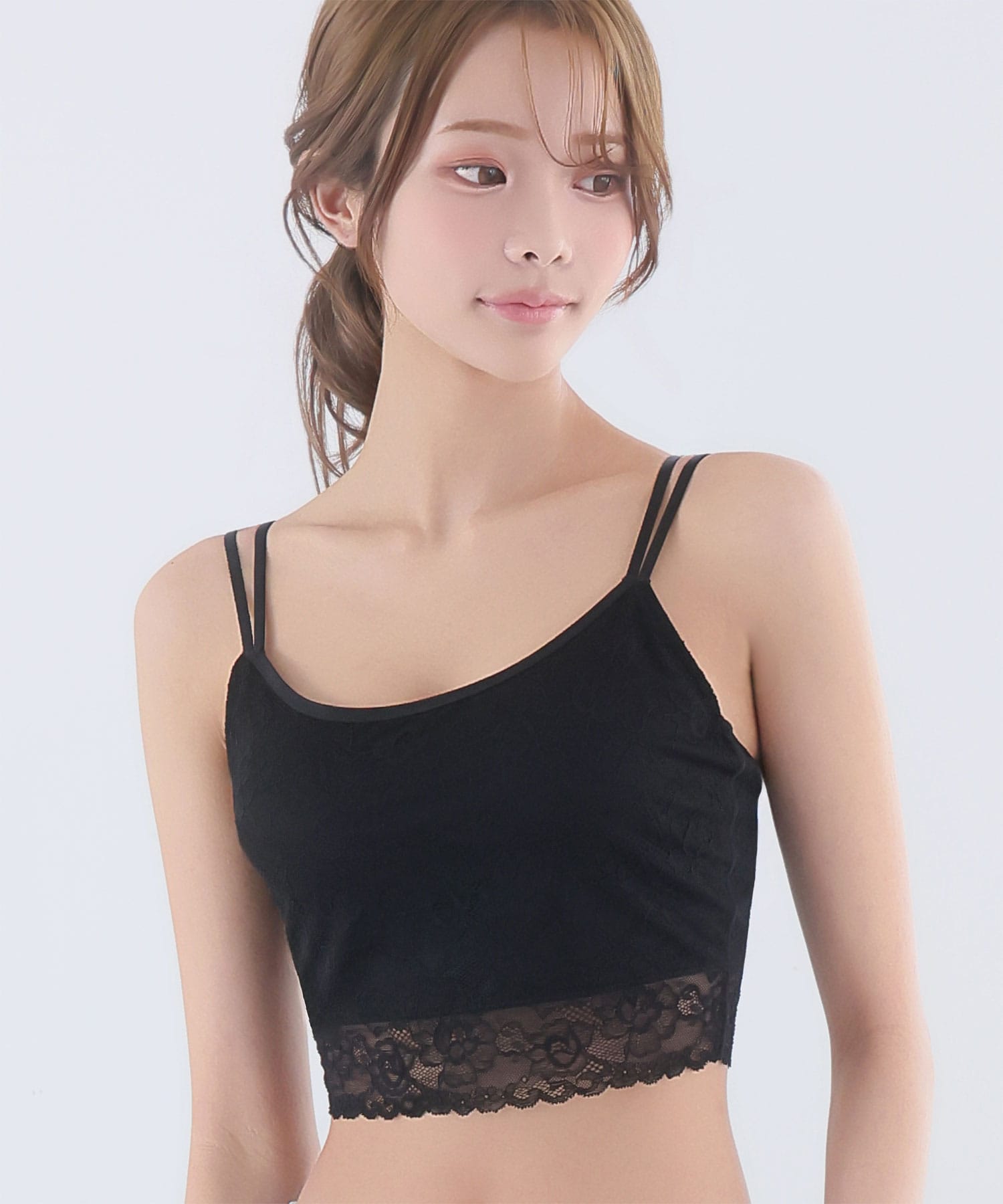 ・レース素材のキャミソールを重ねた下着に見えない見た目