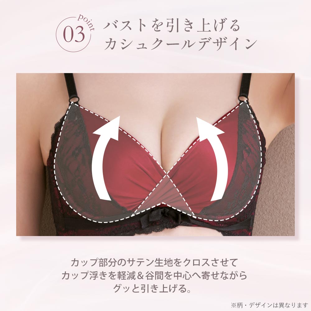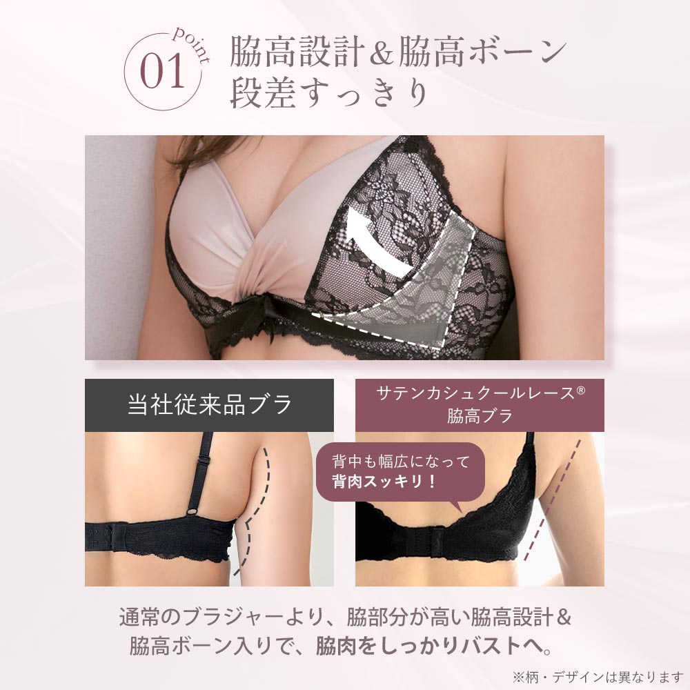 当店人気No.1シリーズ「カシュクールレース脇高ブラ(R)」に上品な光沢感のある生地を使用した華やかなブラセット