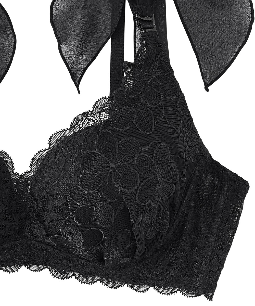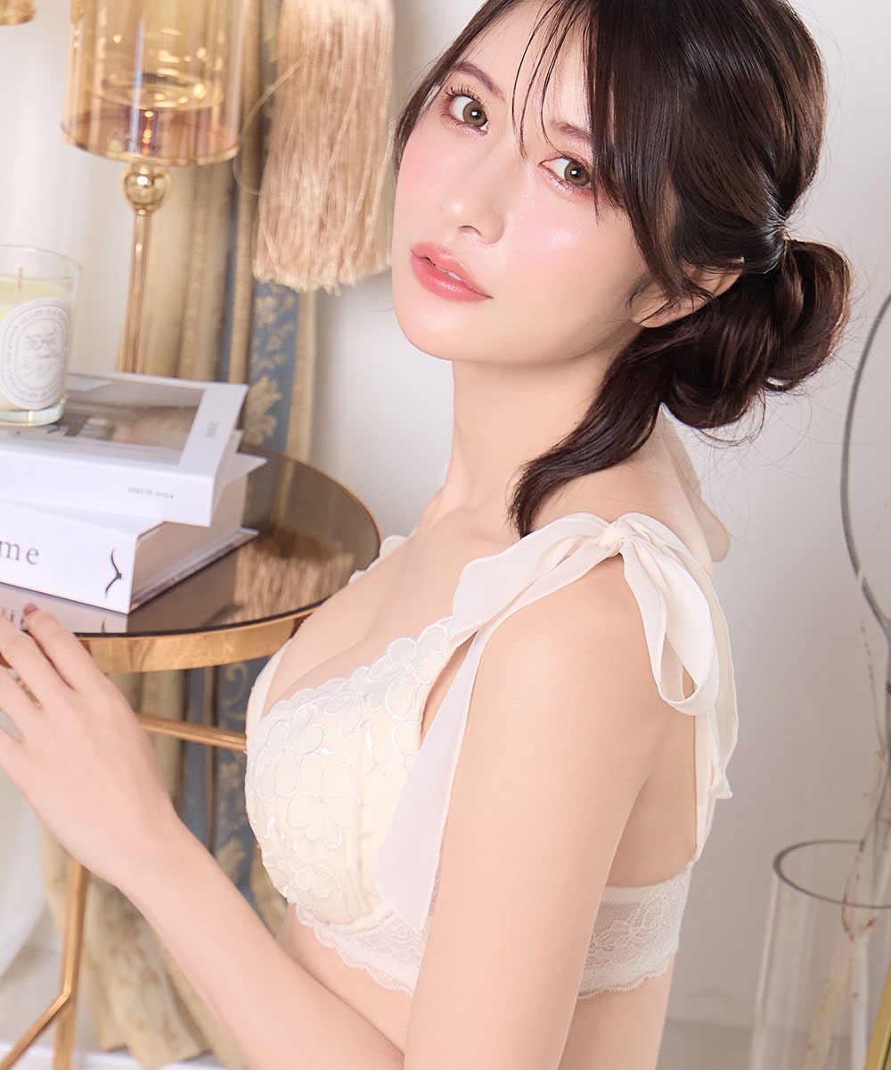 繊細なフラワーレースの優しいつけ心地が特徴の脇高ブラジャー