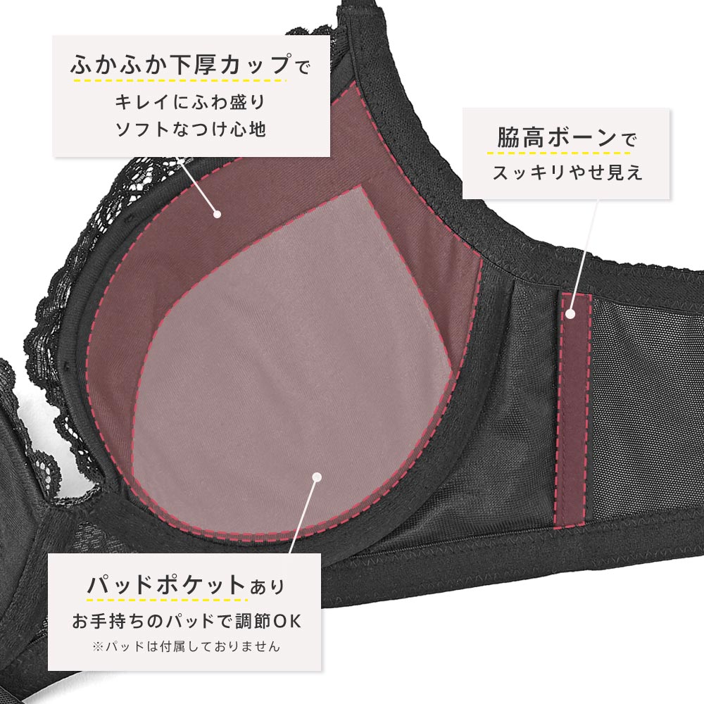 ・やわらかな下厚カップがバストになじみ、きれいなバストラインを演出