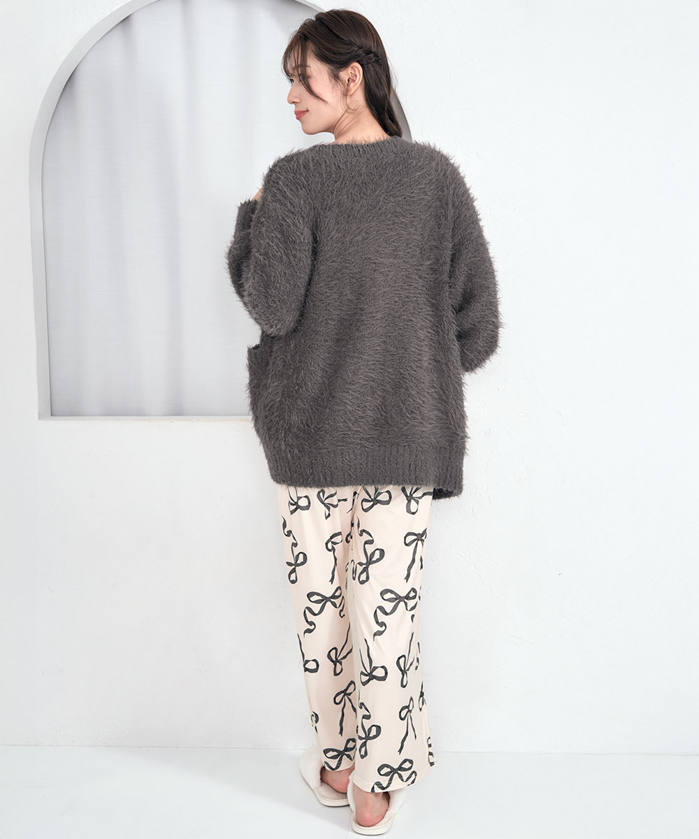 ・カーディガンはもっちりとしたシャギーニット素材であたたかく快適