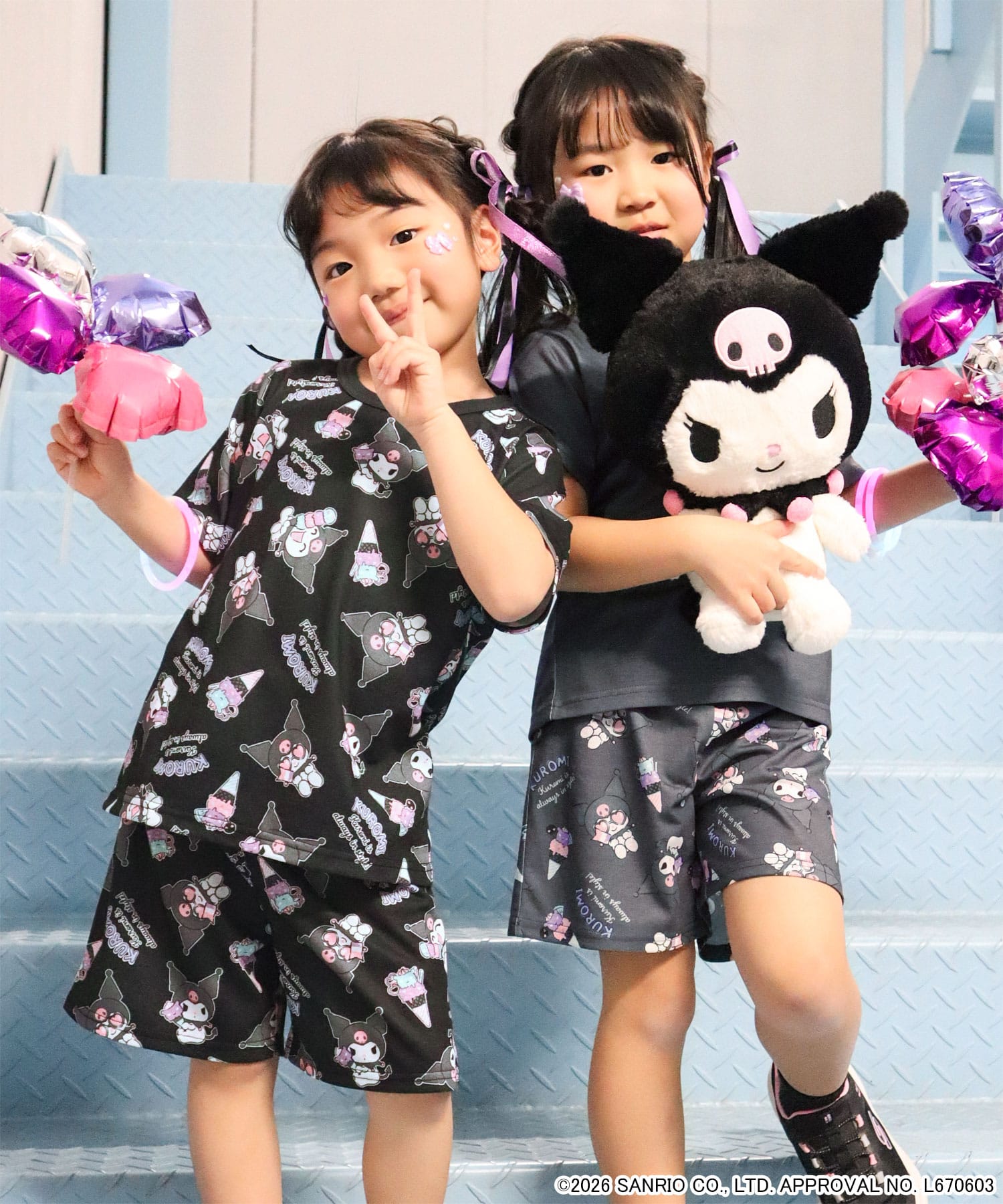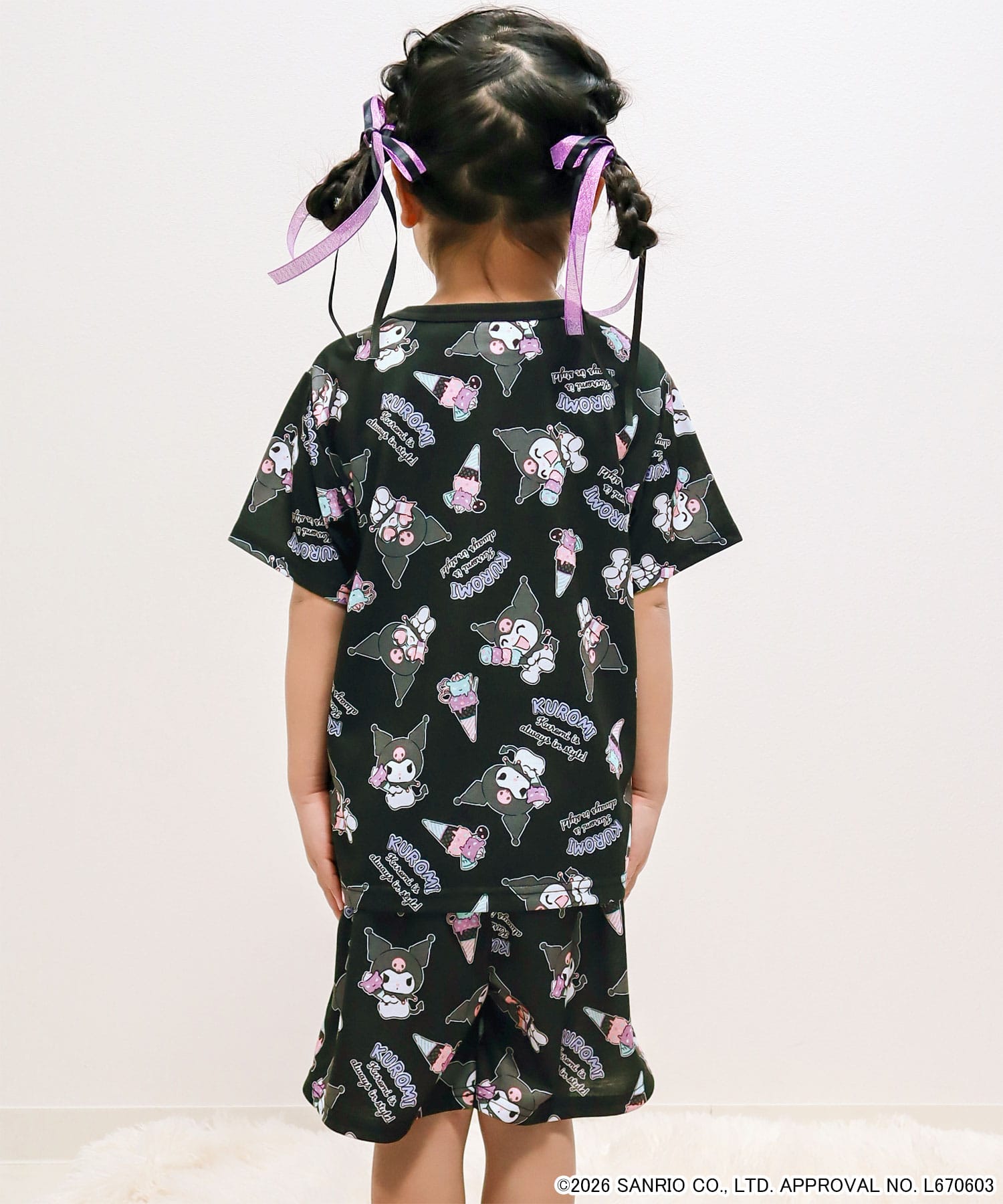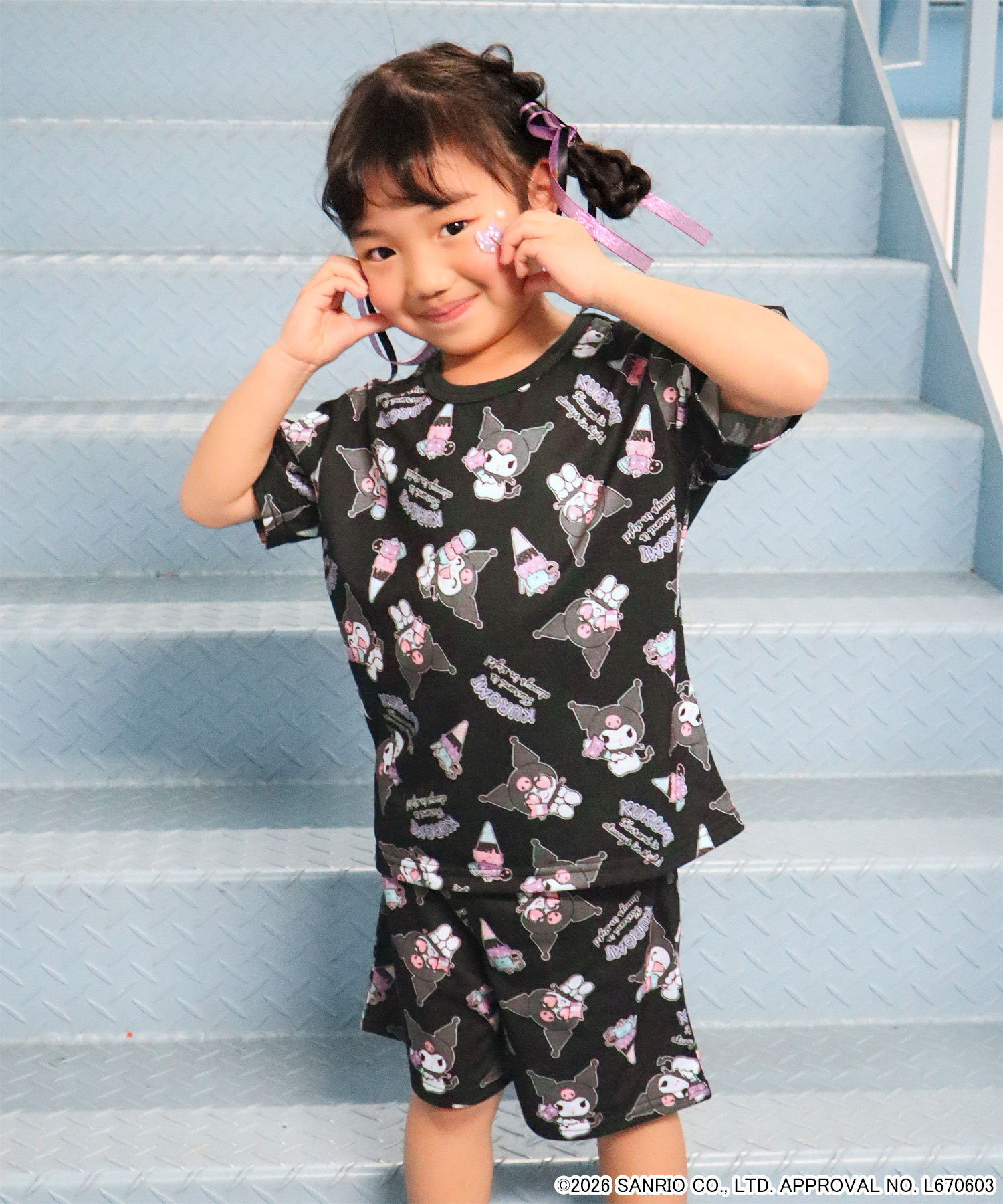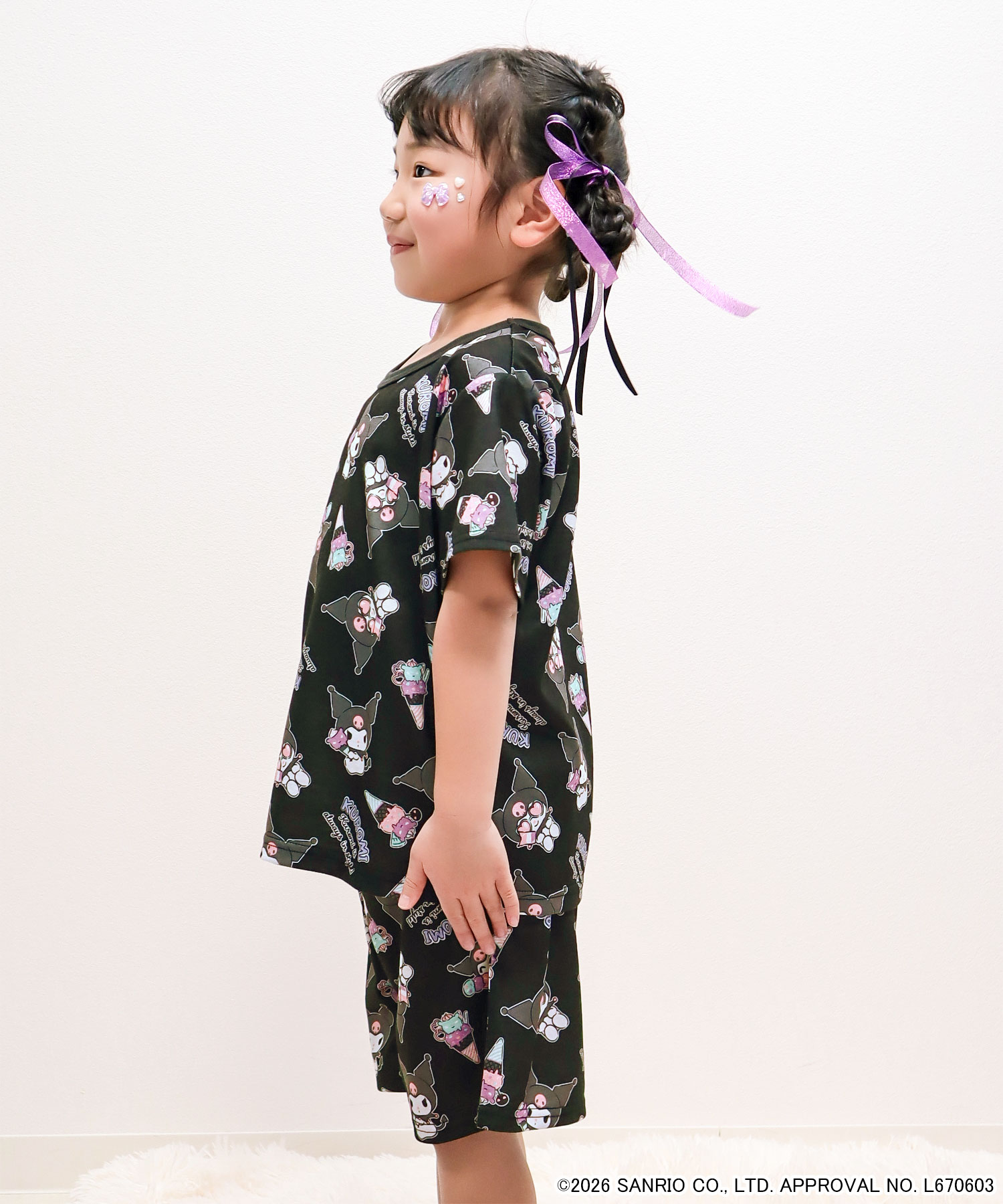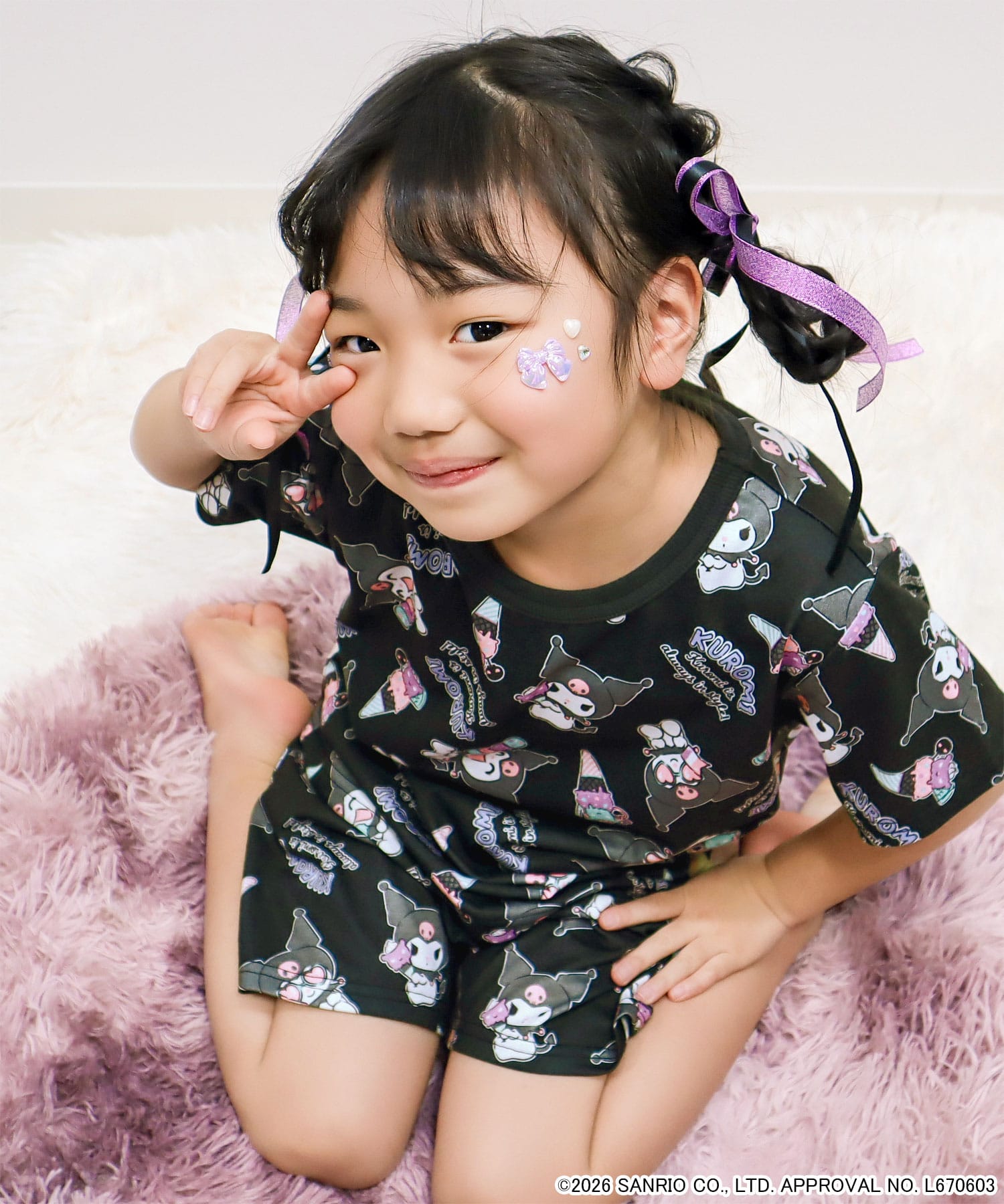 世代を超えて愛されるサンリオキャラクターズから、人気キャラクター「クロミ」が夏らしいアイテムを持ったイラストが可愛い、キッズサイズのルームウェアが登場。トップスに正面に大きくクロミをプリントしたタイプと、クロミを散りばめた総柄タイプの2種類をご用意しました。半袖Tシャツとハーフパンツの上下セットはさらっとした肌触りの良い薄手素材を使用。クロミが好きなお友達へのプレゼントにもオススメのリラックスウェアは、部屋着やパジャマ代わりのナイトウェアとしてもお使いいただけます。同柄の大人サイズも展開していますので、ご家族、お子様と一緒におそろいのリンクコーデが楽しめます。カラー展開は総柄タイプのキャラが映えるブラック、正面に大きくクロミをプリントしたオフホワイト、チャコールグレーをご用意しました。