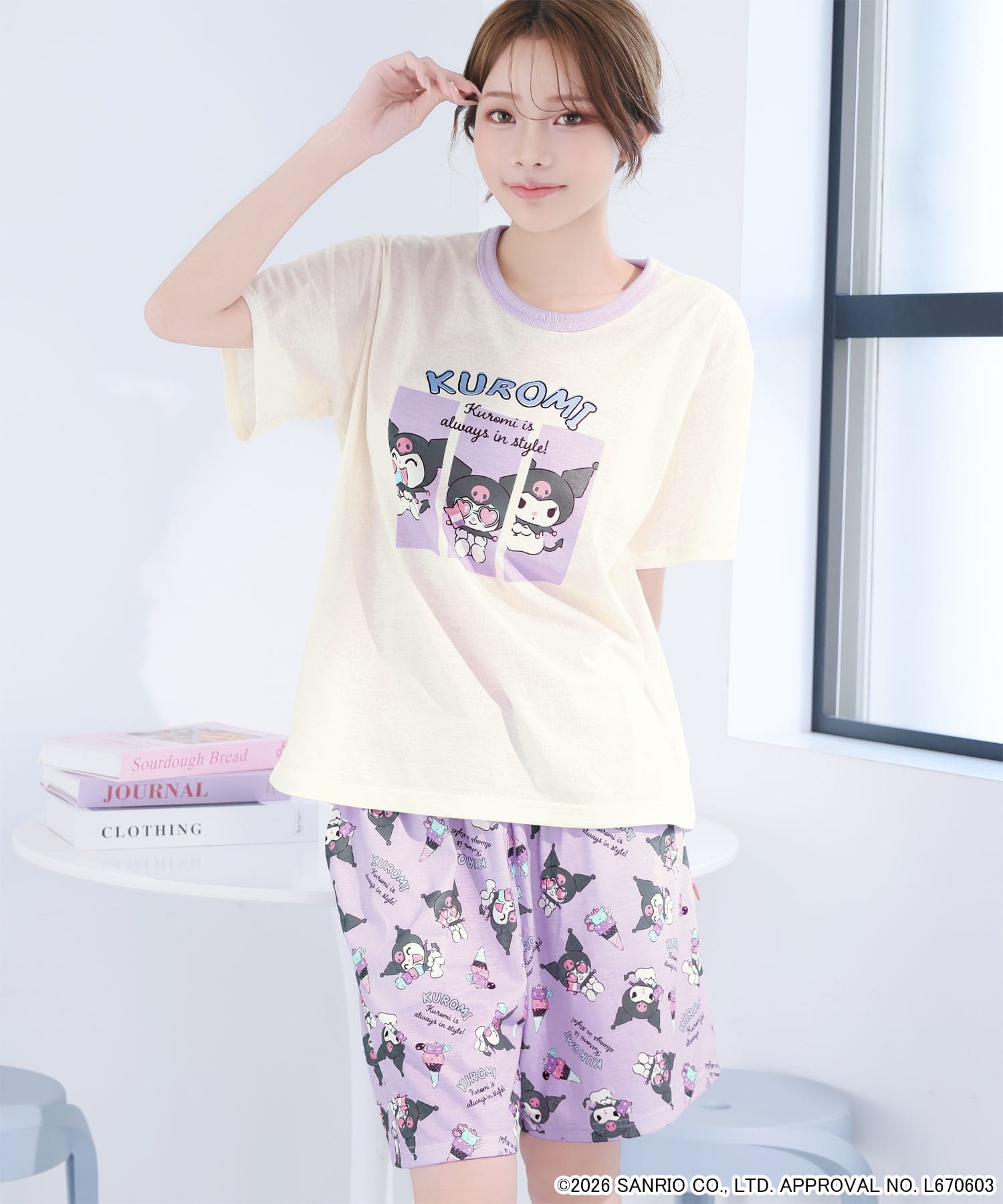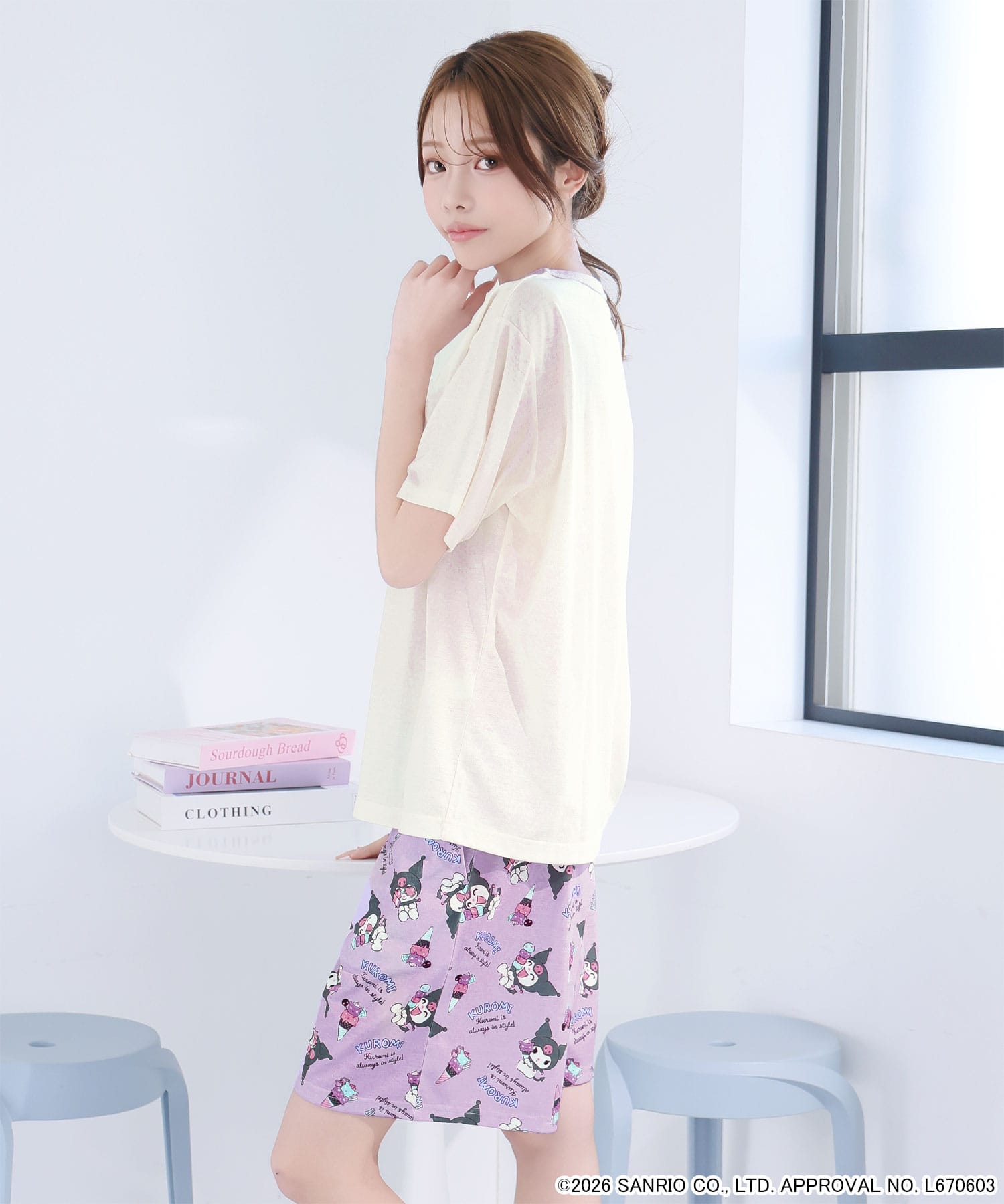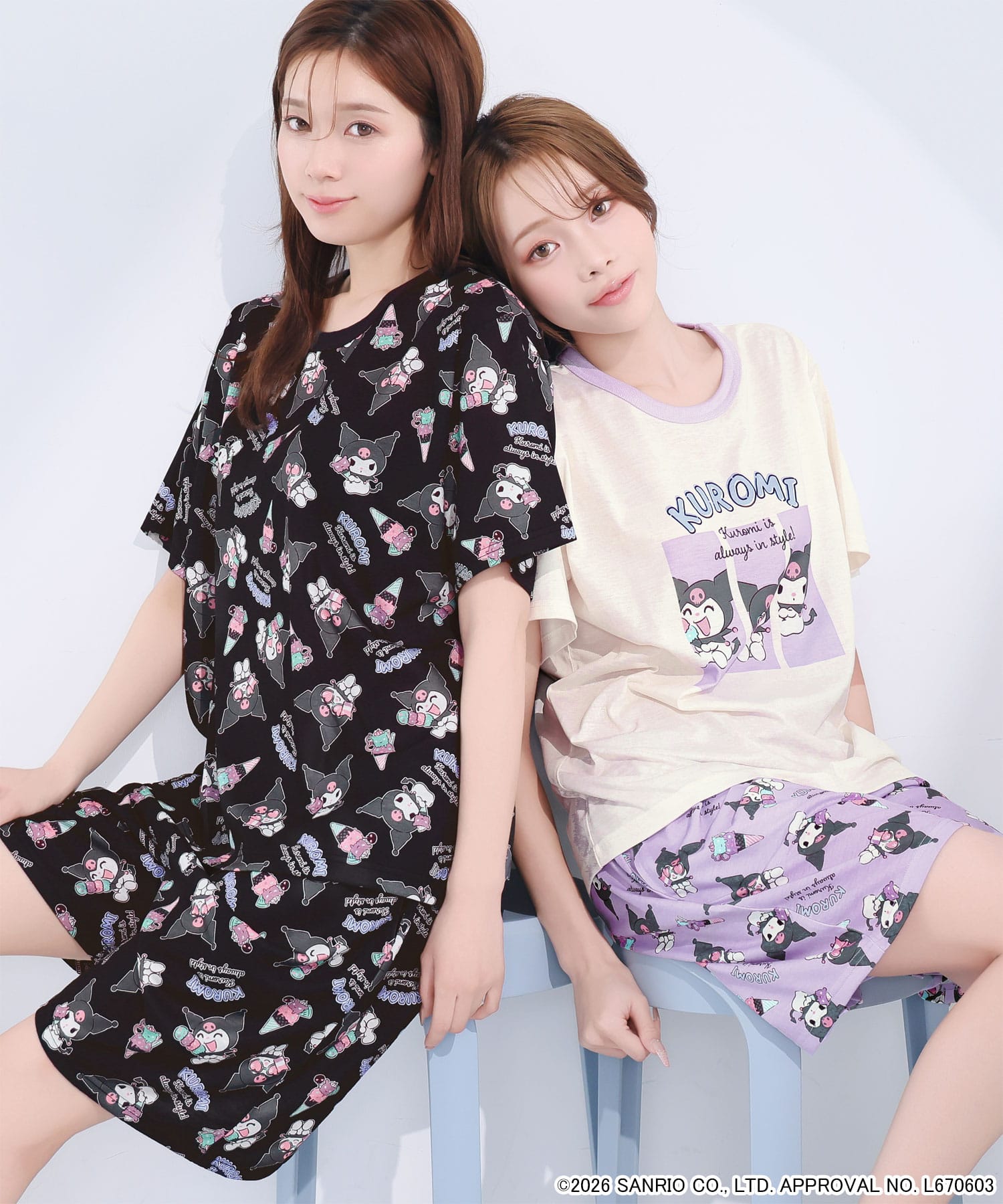 世代を超えて愛されるサンリオキャラクターズから、人気キャラクター「クロミ」が夏らしいアイテムを持ったイラストが可愛いルームウェアが登場。トップスに正面に大きくクロミをプリントしたタイプと、クロミを散りばめた総柄タイプの2種類をご用意しました。半袖Tシャツとハーフパンツの上下セットはさらっとした肌触りの良い薄手素材を使用。クロミが好きなお友達へのプレゼントにもオススメのリラックスウェアは、部屋着やパジャマ代わりのナイトウェアとしてもお使いいただけます。同柄のキッズサイズも展開していますので、ご家族、お子様と一緒におそろいのリンクコーデが楽しめます。カラー展開は総柄タイプのキャラが映えるブラック、正面に大きくクロミをプリントしたオフホワイト、チャコールグレーをご用意しました。