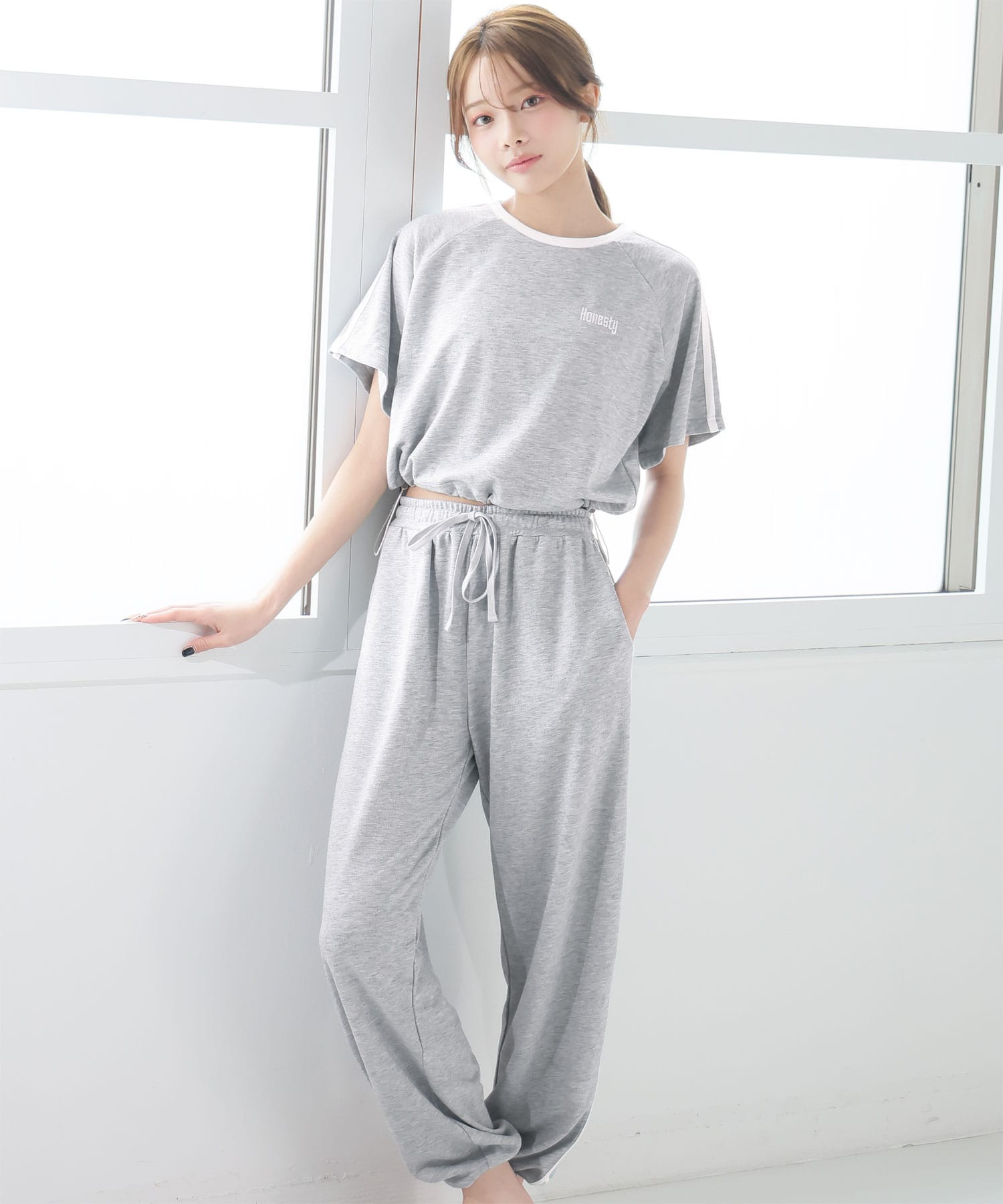 家でも、外でも、ちょうどいいラフ感。サイドラインがアクセントの半袖トップス×ワイドパンツのセットアップです。