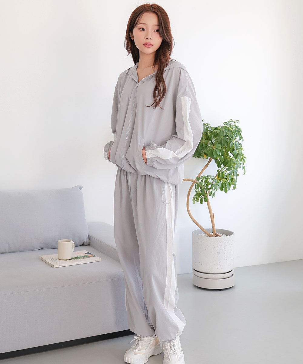 毎日の紫外線対策を、無理なく快適に。UVカット・吸水速乾機能を備えた、メッシュ素材の長袖パーカ&ロングパンツの上下セット。