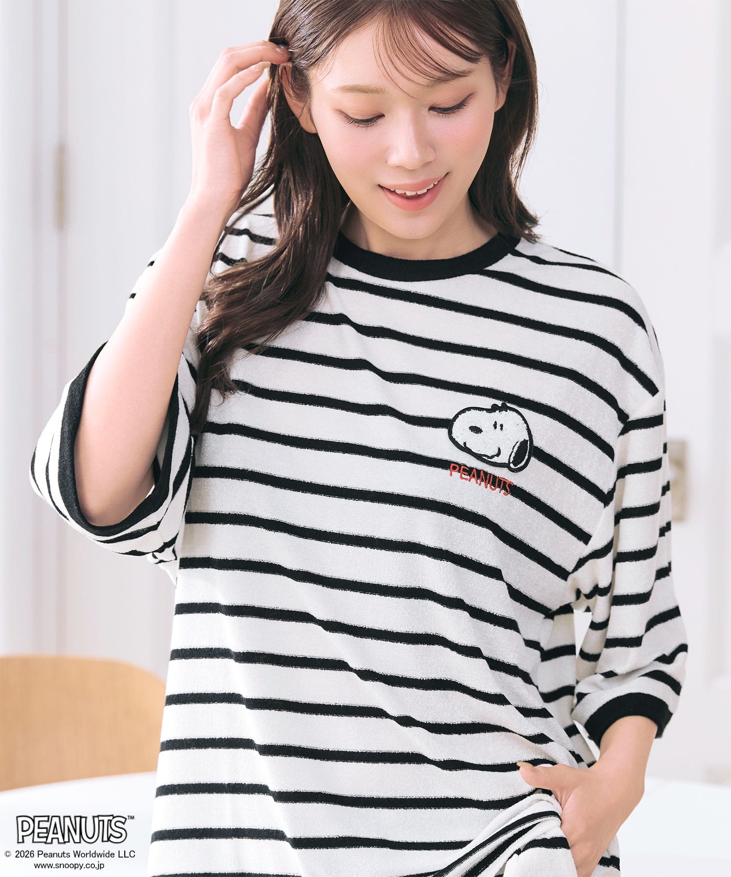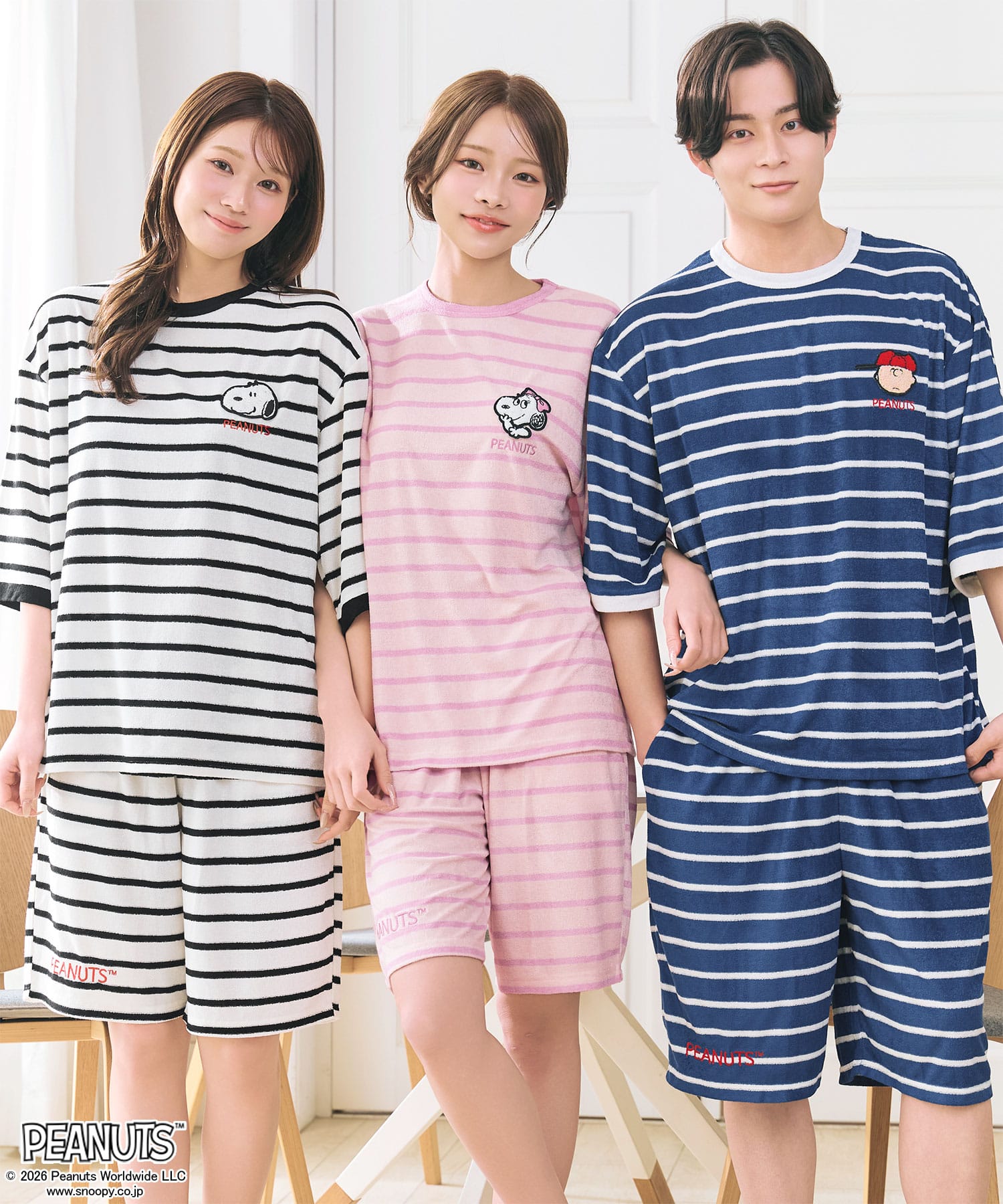 PEANUTS スヌーピー 接触冷感 ボーダーパイル 半袖 上下セット (男女兼用サイズ)