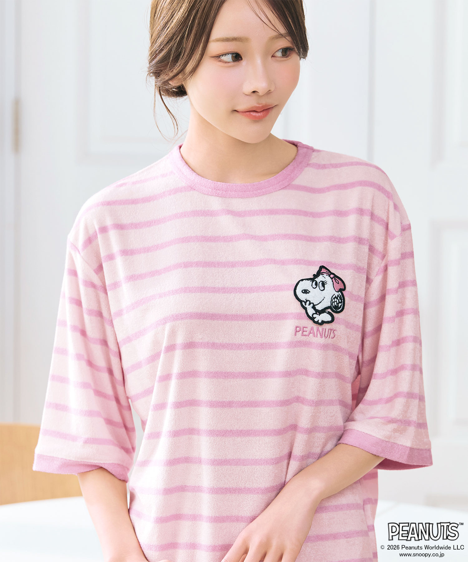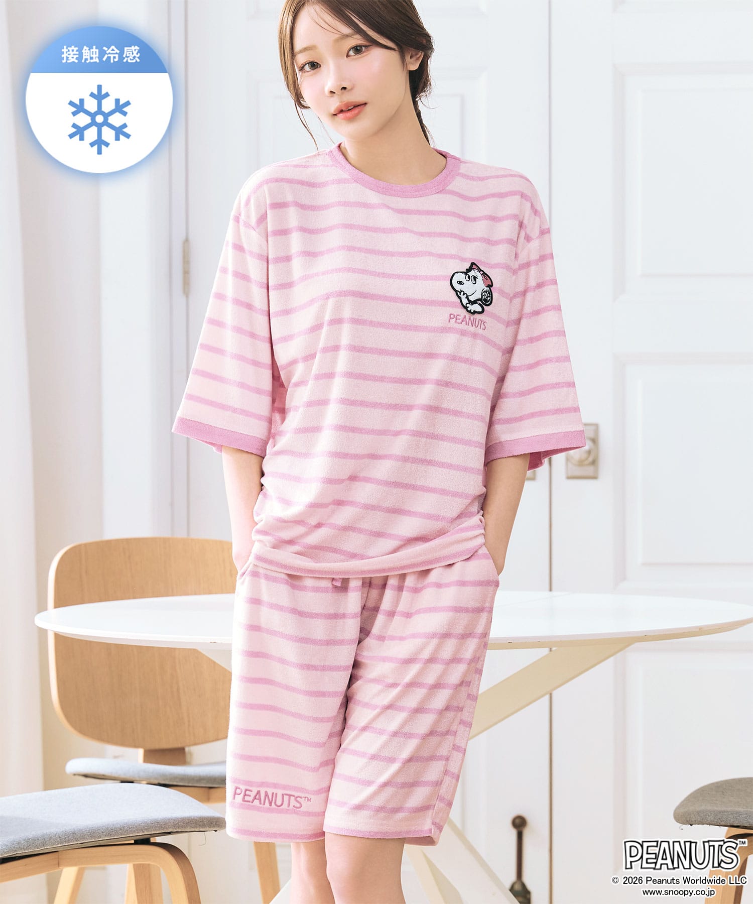 PEANUTS スヌーピー 接触冷感 ボーダーパイル 半袖 上下セット (男女兼用サイズ)