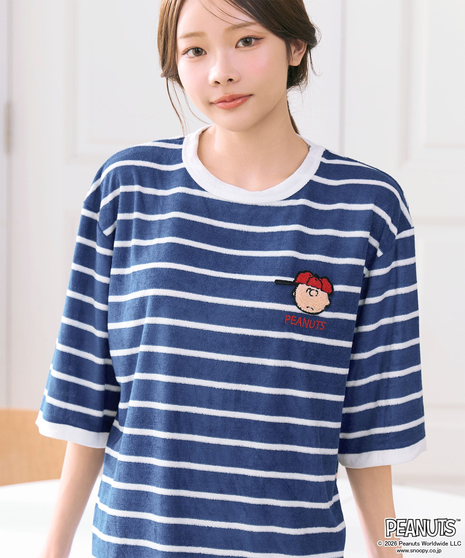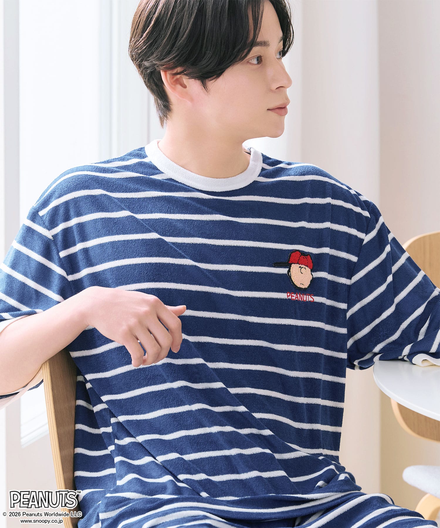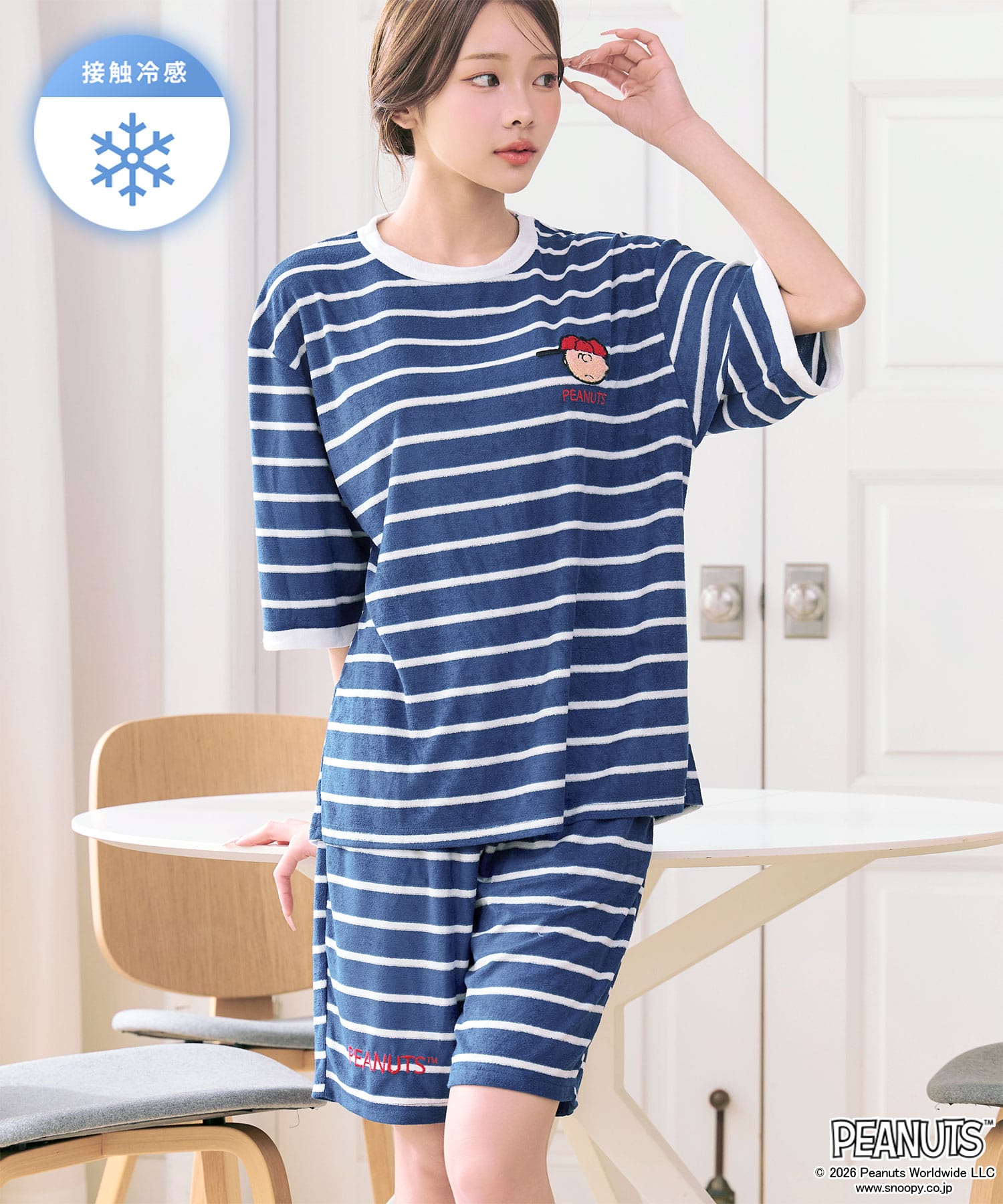 PEANUTS スヌーピー 接触冷感 ボーダーパイル 半袖 上下セット (男女兼用サイズ)
