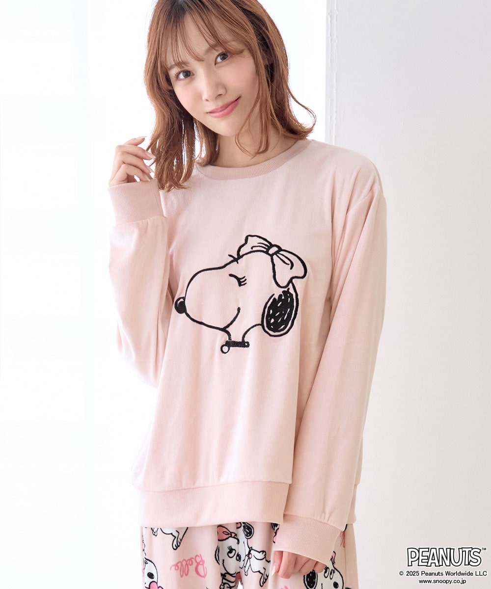 PEANUTS スヌーピー フェイス ストレッチ ソフトボア 長袖 上下セット (男女兼用サイズ)