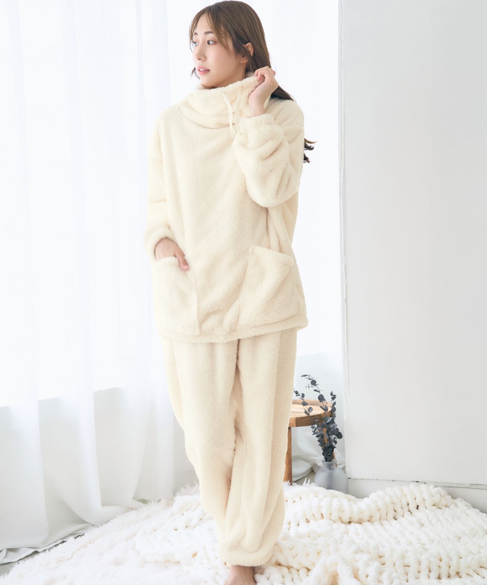 【WEB限定】首まであったか フリース 長袖 上下セット