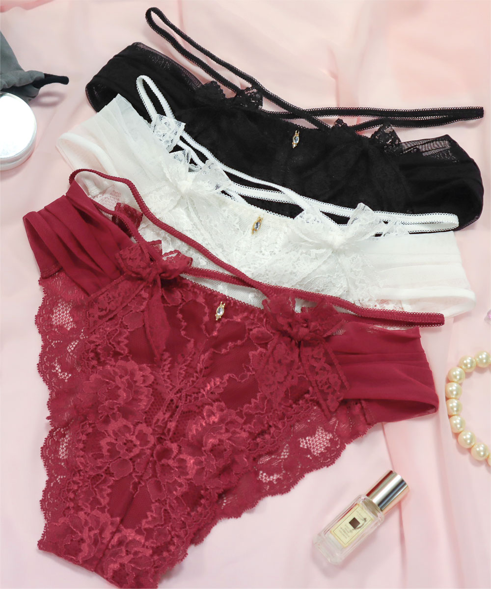 身につけるだけで、少し特別な気分になれるセクシーなハーフバックショーツ。ふんわり広がるチュールと繊細なレースで仕上げた、フェミニンで華やかな一枚です。