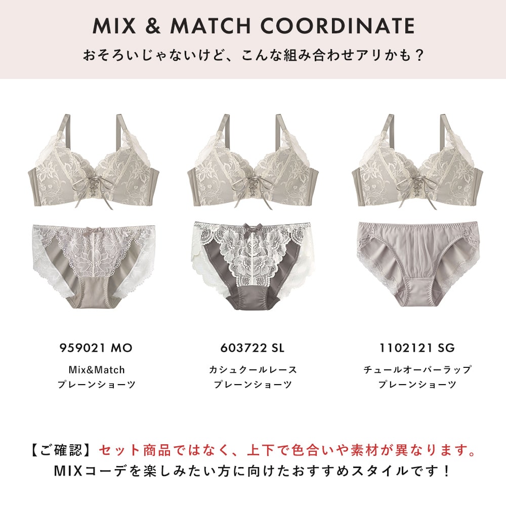 ・カップ部分のデザインはスキンカラー×カラーレースと、カラーベース×オフホワイトレースの2タイプ