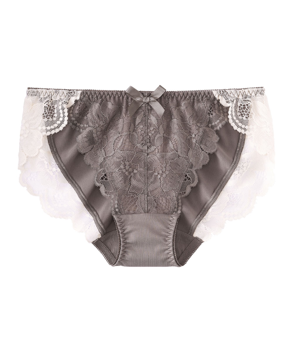 繊細な花柄レースとミニリボンが特徴の大人セクシーなプレーンショーツ。伸縮性のある身生地とやわらかなレースがお腹とお尻にやさしくフィットし、包み込まれるような安心感のあるはき心地に。脚ぐり部分にはストレッチレースを使用しており、ショーツラインがアウターに響きにくいため、タイトなボトムスやワンピース、スカートにも合わせやすい一枚です。カラー展開は、ホワイト系・グレー系・ブラック系・ベージュ系といったベーシックカラーに加え、レッド系・ピンク系・ブルー系・グリーン系・パープル系など、シーズンごとのトレンドカラーも豊富にラインナップ。毎日身に着けたくなるような飽きのこないデザイン展開で、身生地とレースを同系色でまとめたナチュラルなスタイル、ブラックレースを重ねたシックな印象のスタイル、ホワイト・オフホワイト・ベビーピンクなどのレースを重ねたフェミニンなスタイル、アイボリーの部分レースがアクセントになった大人かわいいスタイルなど、4タイプのデザインをご用意しています。