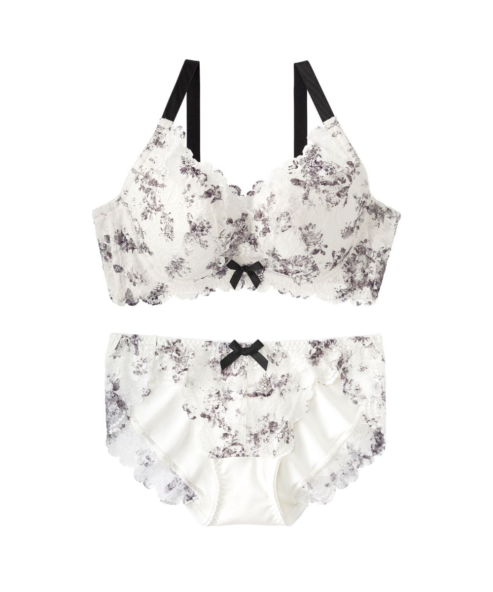 ・セットショーツは透け感のある幅広レースで、パンティラインが響きにくい