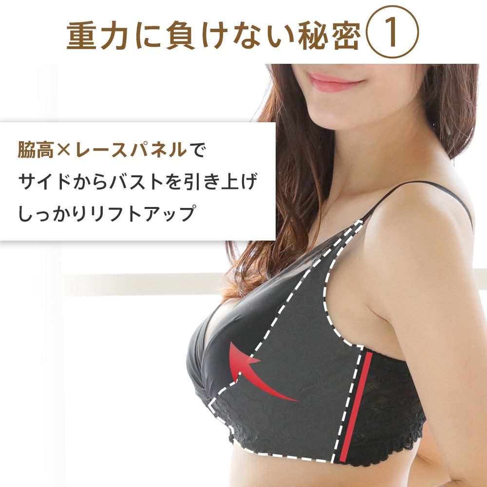 ・カップサイドのレースパネルでバストをリフトアップ