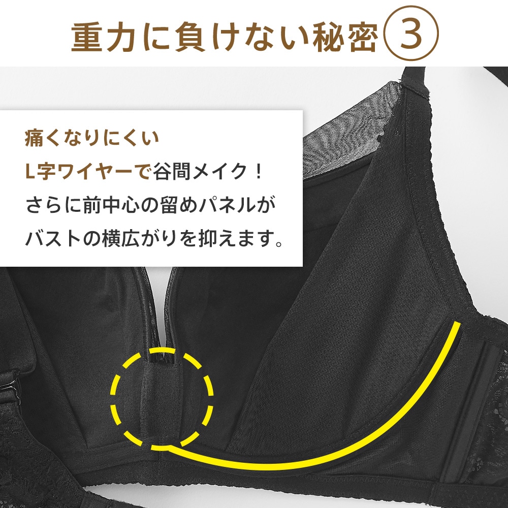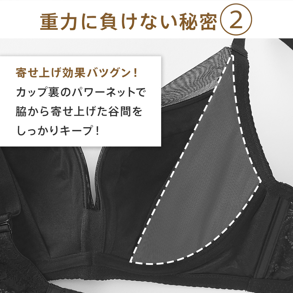 ・カップ裏のパワーネット×サイドパネルでバストの横流れを防ぎ、谷間をキープ