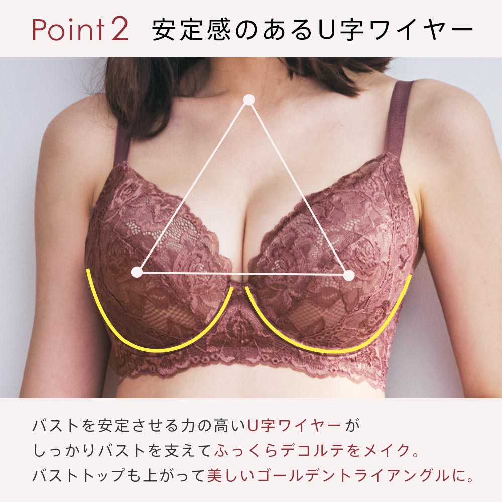 ・やや深めのU型ワイヤーを採用し、グラマーサイズでも安定感のあるつけ心地
