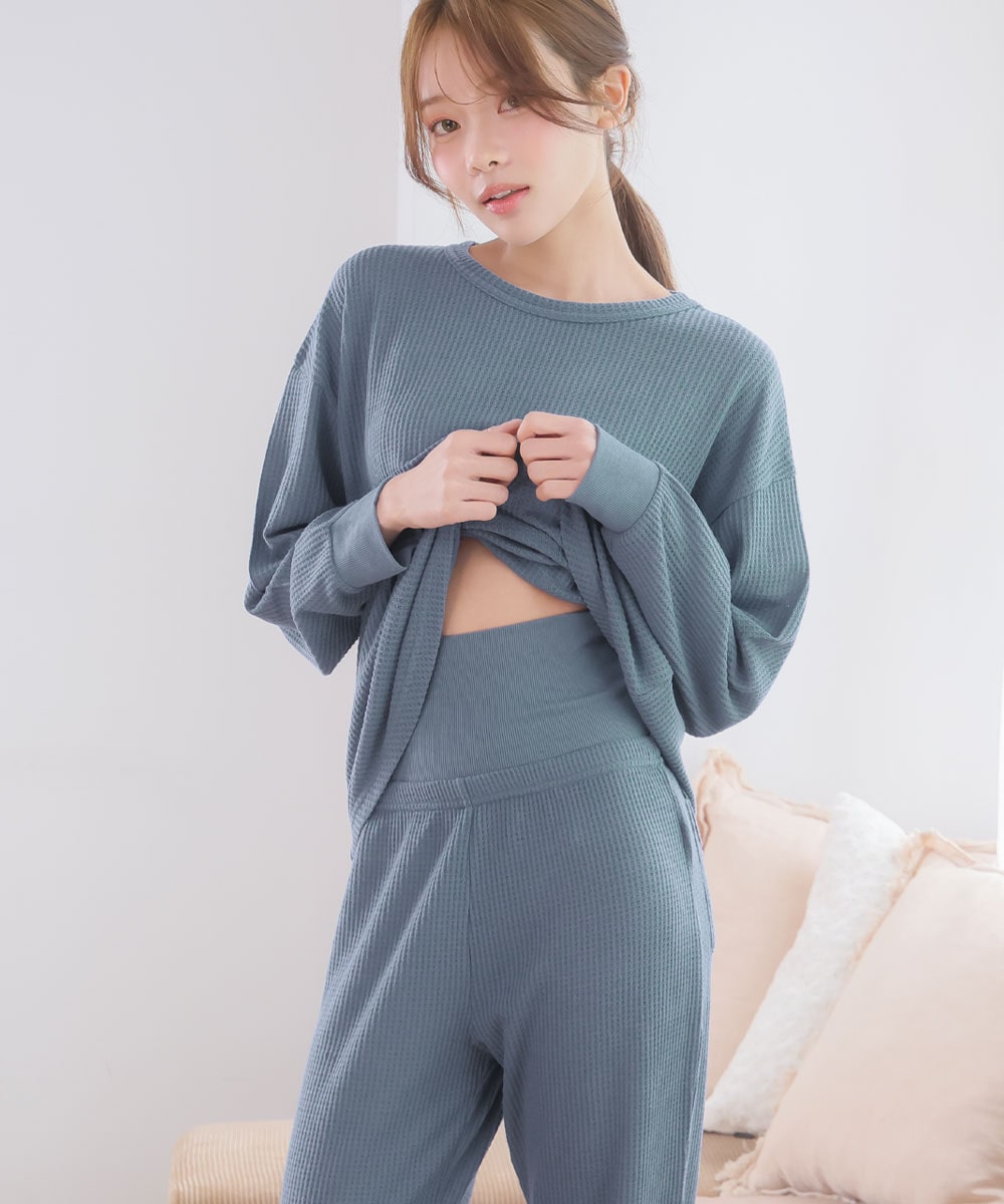 ふんわりワッフル 腹巻付き 長袖 上下セット