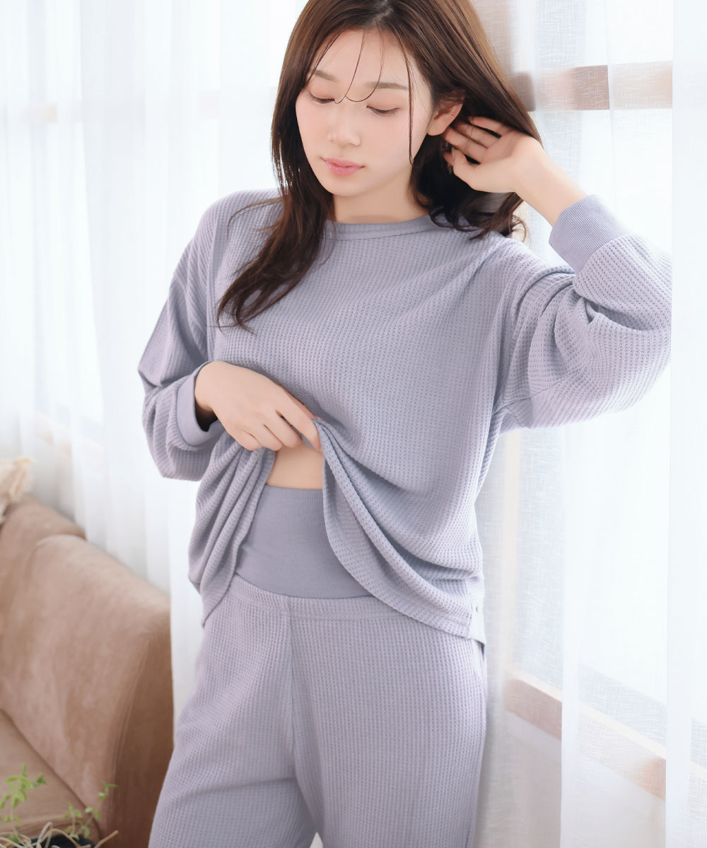 ・ふんわりやわらかな肌ざわりのワッフル素材を使用