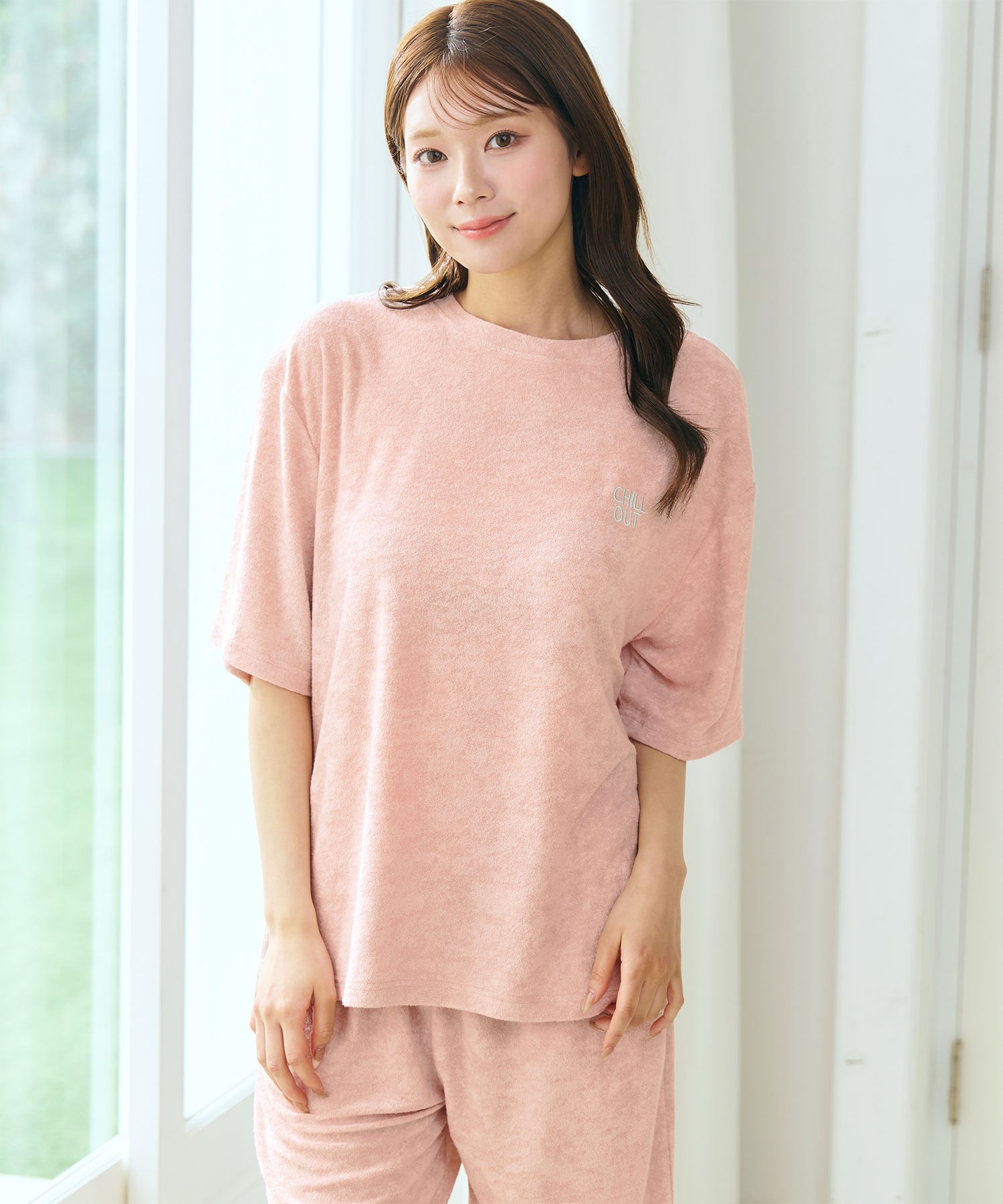 ・胸元の「CHILL OUT(リラックスしよう、ゆっくりしよう)」の刺繍が、大人可愛いアクセント