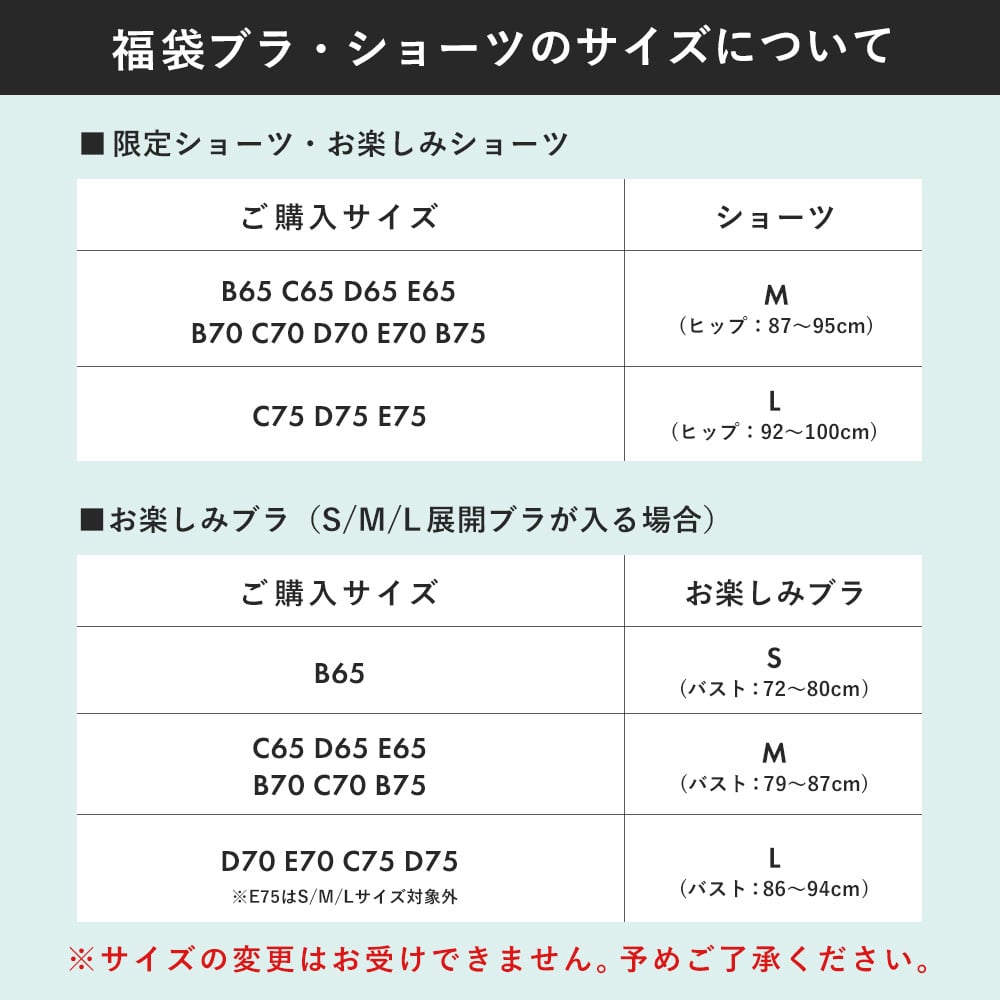 ■「お楽しみブラ」はS/M/Lサイズ展開のブラが入っている場合があります。