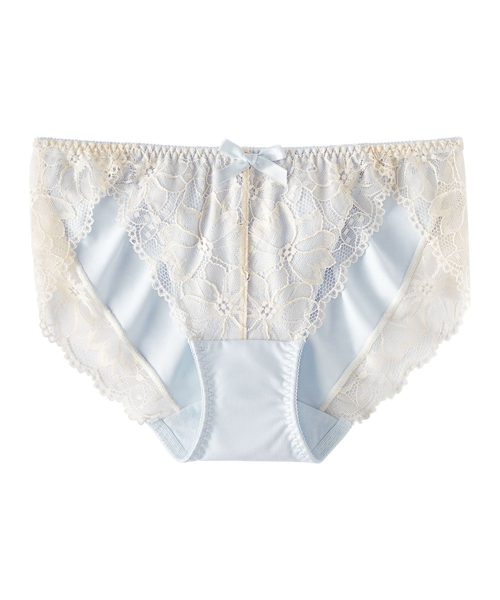 透かし模様の花柄レースが上品でエレガントな印象のプレーンショーツ。フロントにはミニリボンをあしらい、さりげない可愛らしさをプラスしました。伸縮性のある身生地とやわらかなレースがお腹とお尻にやさしくフィットし、包み込まれるような安心感のあるはき心地に。脚ぐり部分にはストレッチレースを使用しており、ショーツラインがアウターに響きにくいため、タイトなボトムスやワンピース、スカートにも合わせやすい一枚です。肌触りの良い生地で快適に過ごせるため、デイリー使いにもおすすめ。カラーバリエーションは定番のオフホワイトやブラックに加え、グレー系、ピンク系、グリーン系、ブルー系、パープル系など豊富に取り揃えました。毎日着けても飽きがこないよう、身生地とレースを同色でまとめたナチュラルなデザイン、ブラックレースを重ねたシックなデザイン、ホワイトやアイボリーのレースを合わせたフェミニンで大人かわいいデザインの3タイプをご用意しています。