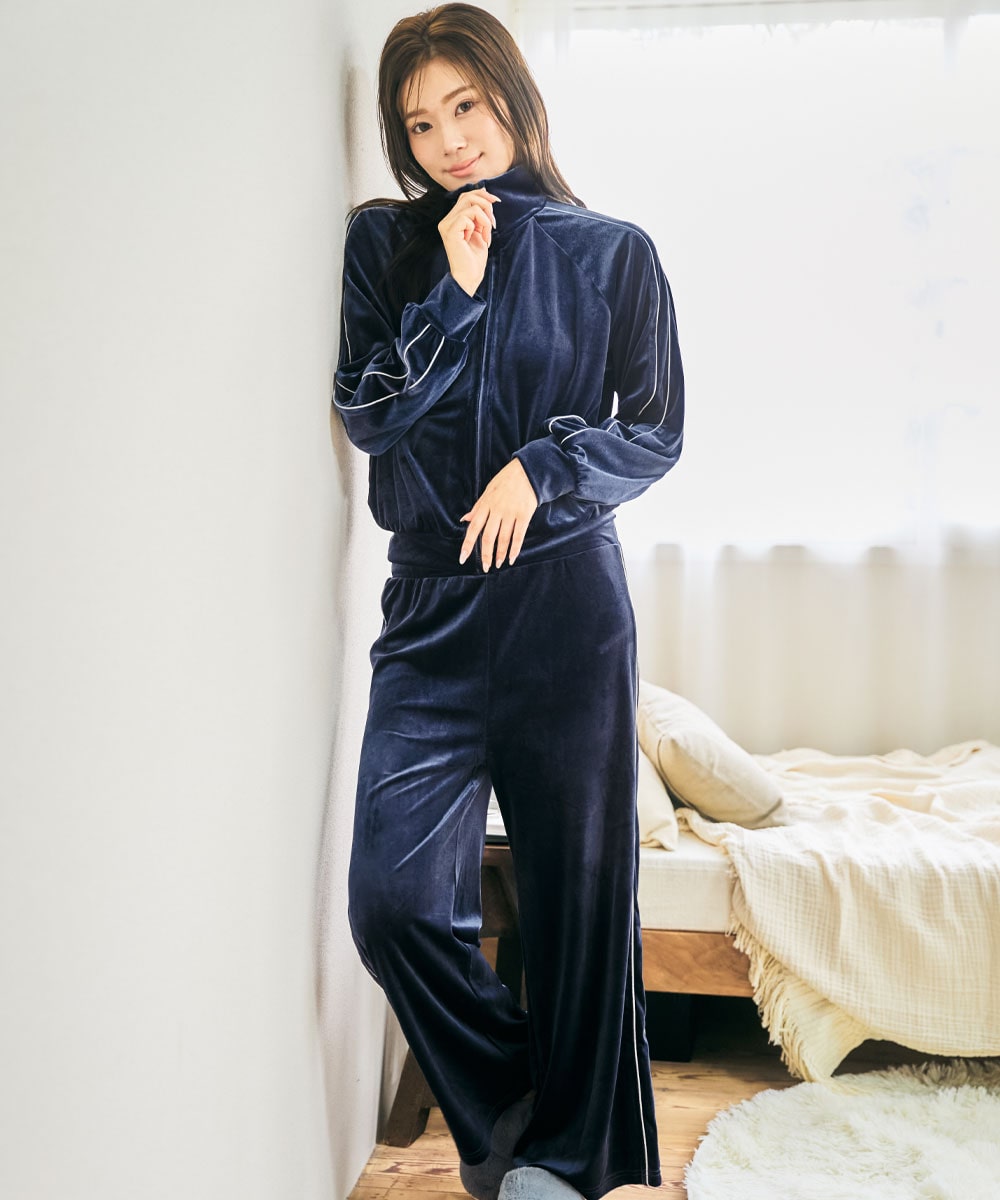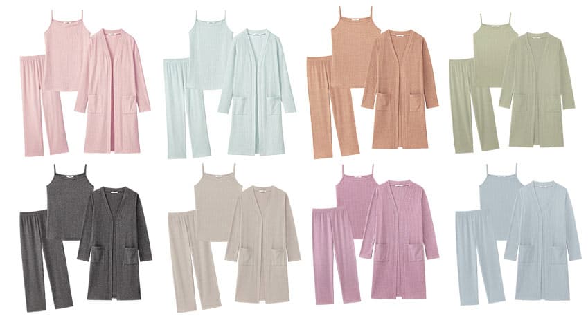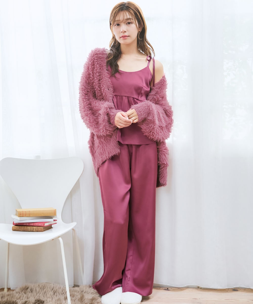 サテンキャミソール シャギーニット カーディガン付き ロングパンツ 3点セット