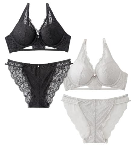 モノトーンフラワー カシュクールレース脇高ブラ(R) ブラジャー&ショーツ